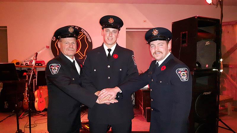 - Vankleek Hill Fire Chief Michel Martin chose three firefighters as “Firefighter of the Year,” because, he said, it was impossible to select just one outstanding firefighter. Seen here are firefighters: Richard Burton, Tyler McMahon and Devin Henderson. It is worth noting that Henderson had just spent the day volunteering his time to direct traffic on Vankleek Hill’s busy Main Street during the annual Christmas Home Tour. (Photo Louise Sproule)