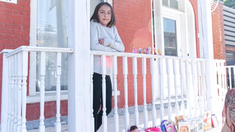 Elena, one of Trash & Treasure’s youngest vendors, managing her family’s inventory. (Photo credit: Cedrik Bertrand)
