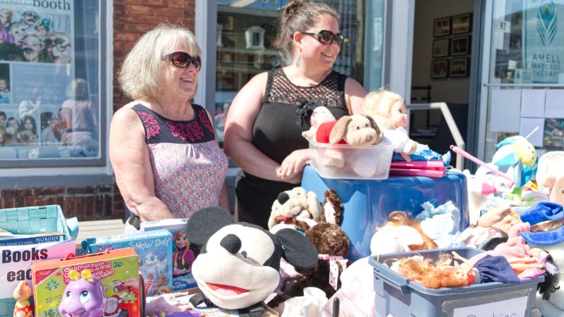Jan Amell and mother Audrey selling toys and various childhood memorabilia in front of her studio. (Photo credit: Cedrik Bertrand)