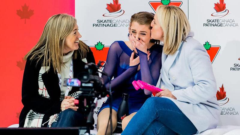 Her coach, Annie Barabe (at left) and coach Sophie Richard (at right) were with Hannah Dawson for her junior women’s title win last week in Saint John, New Brunswick. Photo: Danielle Earl Photography
