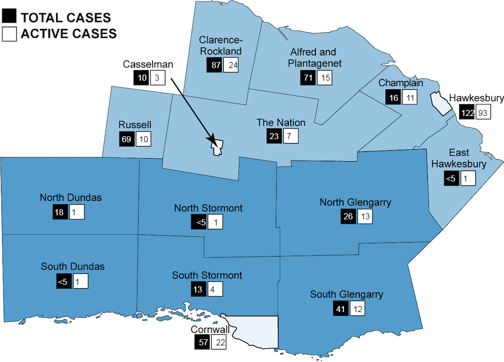 As of Tuesday, October 27, there were 218 active cases of COVID-19 across the jurisdiction of the Eastern Ontario Health Unit (EOHU).