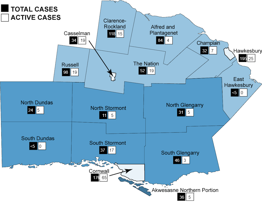 As of November 7, COVID-19 outbreaks were in effect at the Prescott and Russell Residence in Hawkesbury, St. Joseph’s Continuing Care (Quinn House) in Cornwall, Royal Manor Rest Home in Cornwall, and Parisien Manor in Cornwall.