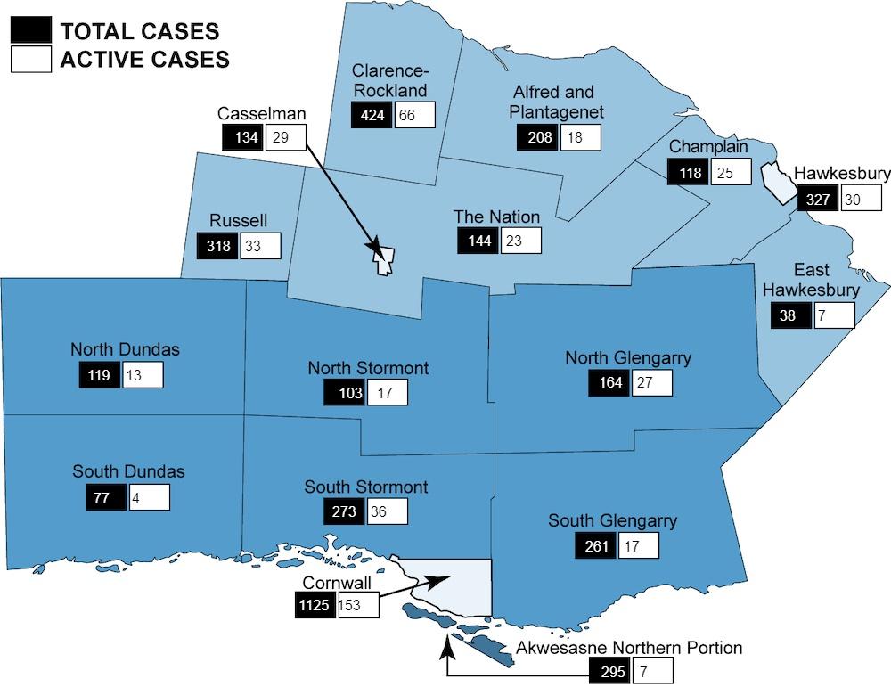 The number of active COVID-19 cases across the jurisdiction of the Eastern Ontario Health Unit (EOHU) decreased to 505 as of Tuesday, April 20 – down from 510 cases the previous day.