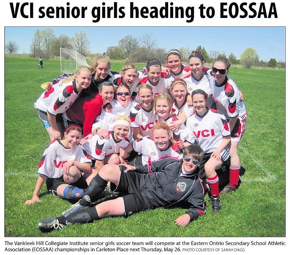 The Review, May 18, 2011 – RUSSELL – A long tradition of success has followed the sports teams at Vankleek Hill Collegiate Institute into their new building this year. All four of the school’s soccer teams headed to the playoff round this past Monday, May 16, at Russell High School. The VCI senior girls soccer team – undefeated in the regular season – won all three of its games and are now headed to the Eastern Ontario Secondary School Athletic Association championships in Carleton Place on May 26.
