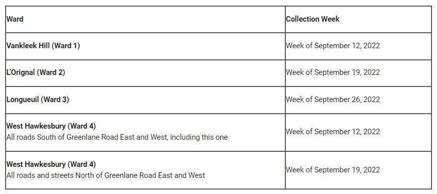 Revised Schedule for 2022 – Annual Large Waste Items Collection