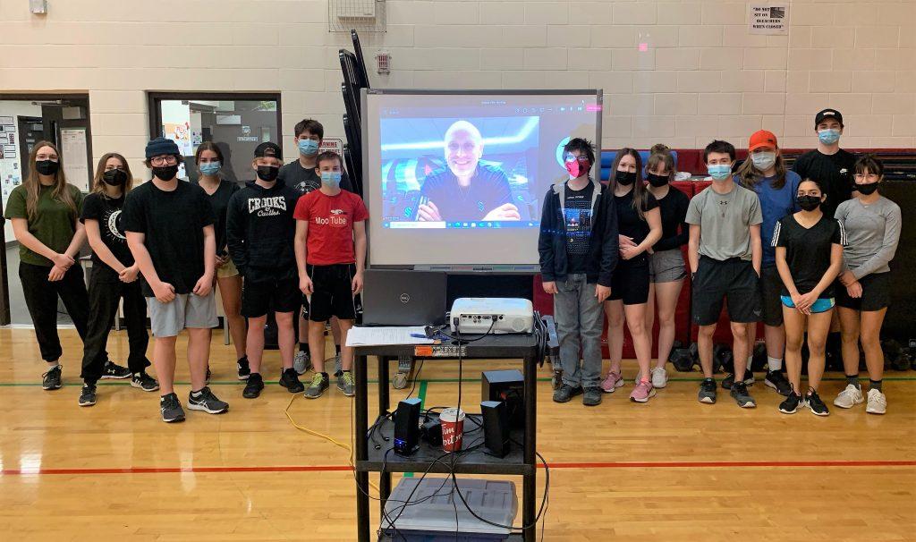 Andrew joined the meeting from the Kraken’s video room at their practice facility and was able to show the students what that looked like. One of the topics that often comes up when guests speak to students is the topic of leadership. He spoke about the importance of being able to develop and recognize those skills in himself and in others as a teenager. He described Jonathan Toews as one of the best leaders that he has seen and told students that the leadership Toews demonstrated often came as subtle gestures, quietly being done when others weren’t necessarily looking.