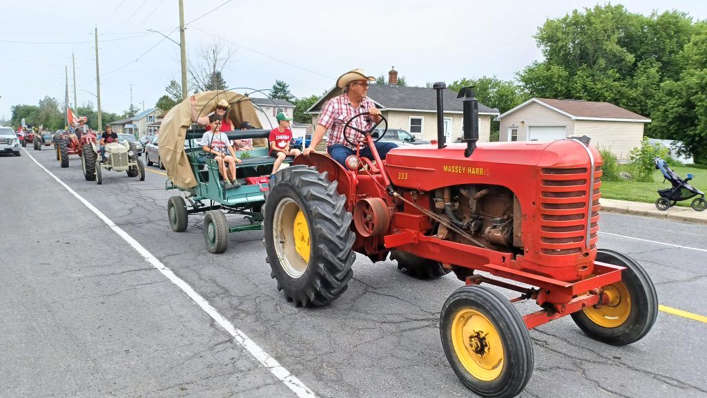 On Canada Day, the Tractor Parade (with a few horses and classic automobiles) made its way across East Hawkesbury from Dandy Road to Sainte-Anne-de-Prescott. Later in the evening, there was social time at the Chute-à-Blondeau Community Centre followed by fireworks.