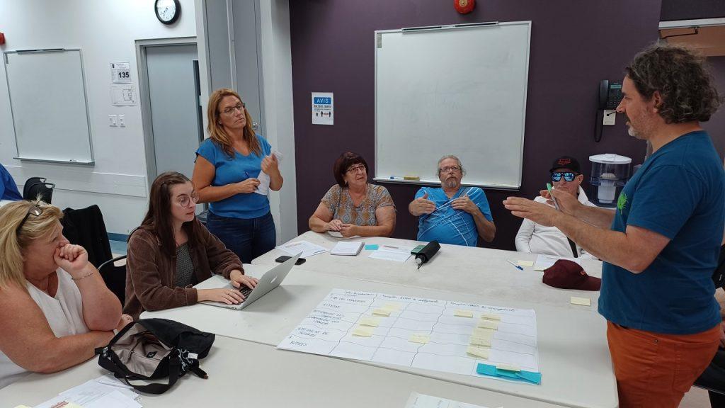 About 20 people attended the consultation on August 25, which began on the street with an introduction by Christian Petit of Rues Principales, an organization which assists municipalities across Quebec with main street business area revitalization and configuration. City councillors Christian David, Virginie Filiatrault, Aline Gravel, and Gaetan Larose, along with Director of Urban Planning Pascal Joly, also participated. Those in attendance shared their opinions of the safety and ambiance before and after the temporary changes were made to the street.