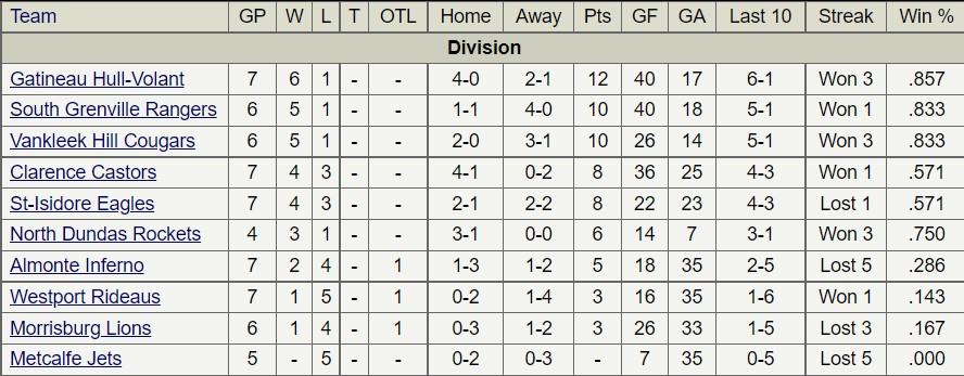 With the two victories, Vankleek Hill moved into a tie for second place in the National Capital Junior Hockey League (NCJHL). Both the Cougars and South Grenville Rangers have identical 5-1 records and trail only the league leading 6-1 Gatineau-Hull Volant, who have played one more game.