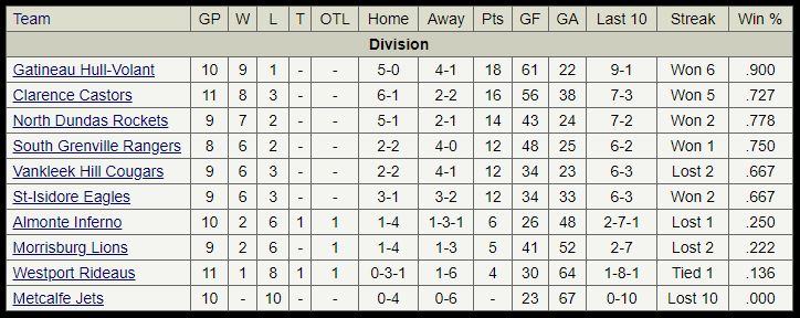 National Capital Junior Hockey League Standings – October 31, 2022
