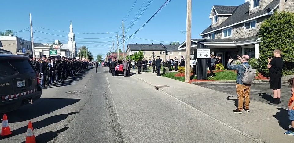 The body of an Ontario Provincial Police (OPP) officer who was killed in the line of duty on Thursday, May 11 was transported to a funeral home in Rockland on Saturday, May 13 in an official procession.