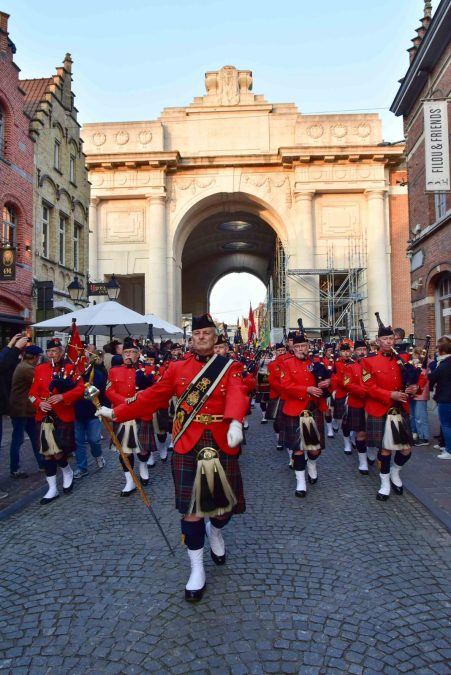According to Young, the group began its tour at a small cemetery and monument in Mook, The Netherlands before continuing to Ypres, Belgium. There, they had the privilege to play at the Menin Gate Last Post Ceremony. This ceremony is performed each evening at 8:00 p.m., 365 days of the year to honour the 54,389 British and Commonwealth soldiers (including 6,940 Canadians) who died in the area around Ypres in the First World War and who have no known grave. Young had the honour of playing the lament at the ceremony.