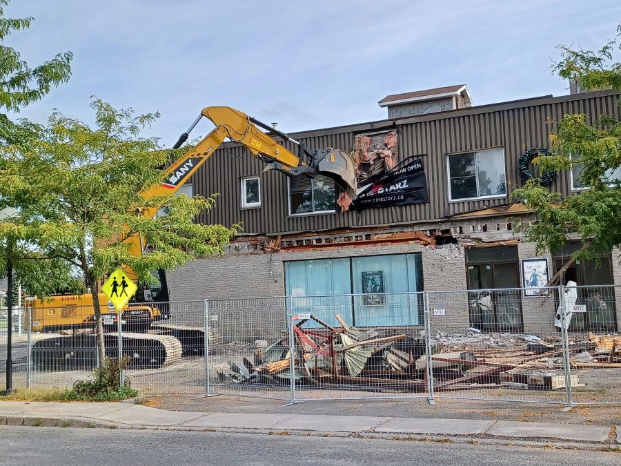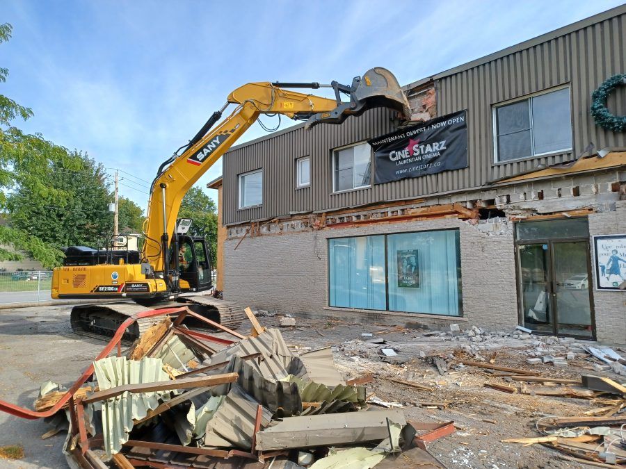 Tuesday, September 12 was the final scene for the former Cinémas Laurentiens building in Grenville. Demolition of the building on rue Principale began that morning.