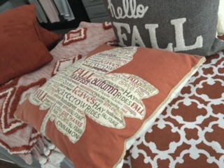 This season we are seeing such amazing fall-inspired cushions and throws – they can be used for inside or outside decorating offering a warm and inviting feeling. Cushions, especially, provide a quick update while throws offer warm, texture and interest.