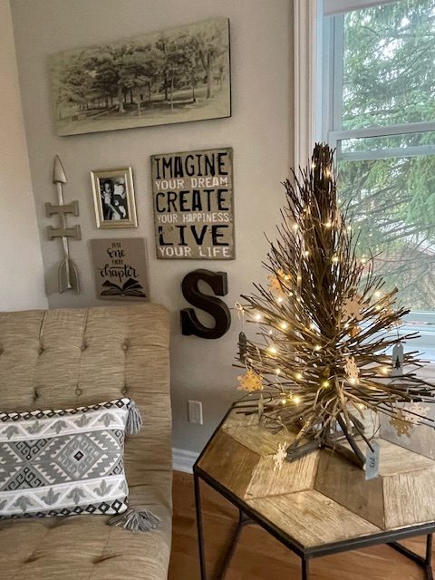My inspiration was to keep as much of my everyday decor as I could and to easily incorporate Christmas into my rooms.