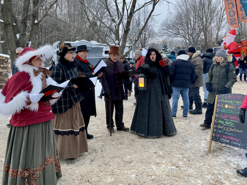 Carolers, Santa and Mrs. Claus, and live musical entertainment by La Grand-Messe – Hommage au Cowboys Fringants also encouraged a warm and friendly atmosphere during the cold.