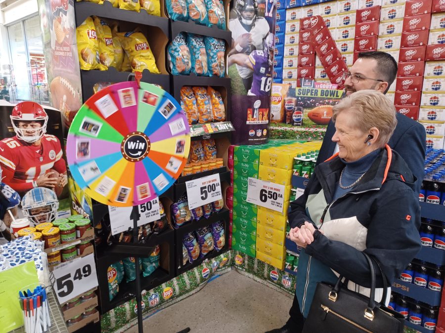 During the grand re-opening, shoppers had the opportunity to spin a wheel and win prizes, and bags of free items were given to customers as they left the store.