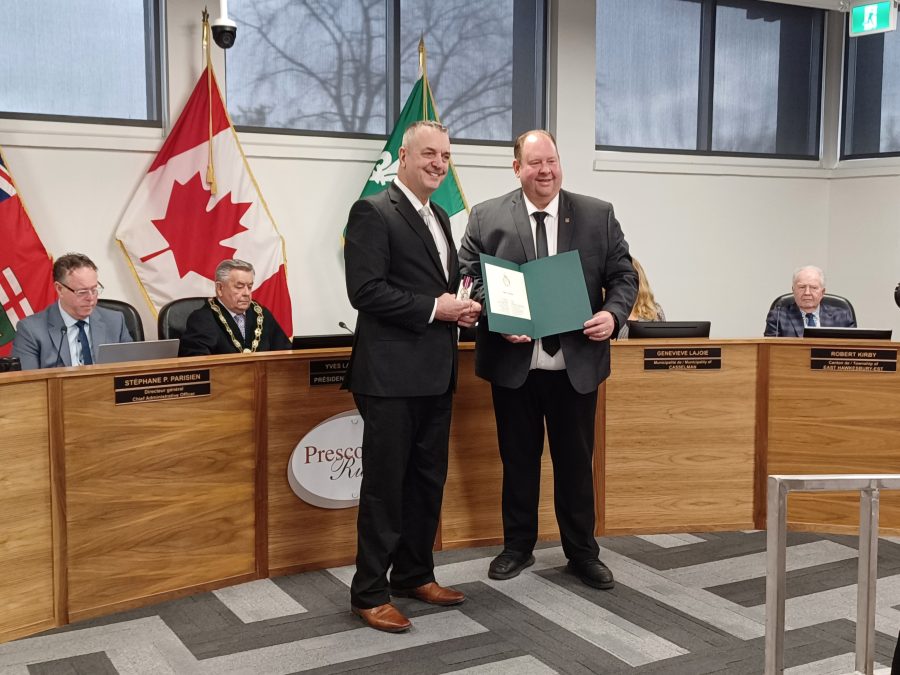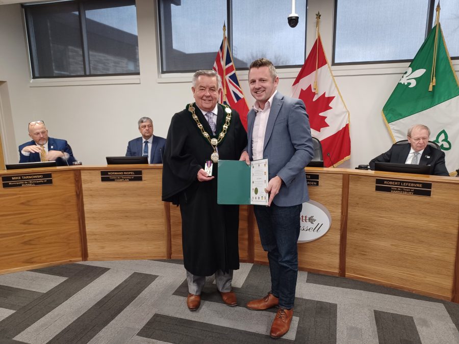 UCPR 2025 Warden and Alfred and Plantagenet Mayor received his Charles III Coronation Medal from MP Francis Drouin.