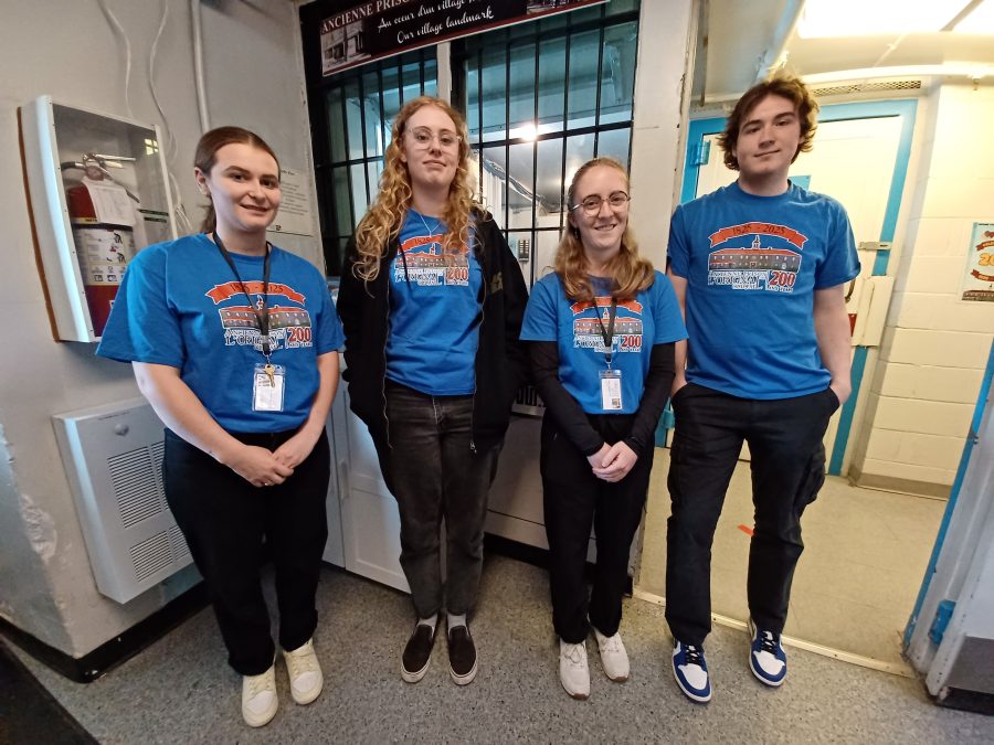 Each summer, the not-for-profit organization which operates the museum hires students to work as interpreters for visitors. Elizabeth Decoeur, Sara-Maude Sirois, Adele Sauvé, and Ben Inskip are on the job at the jail this season.