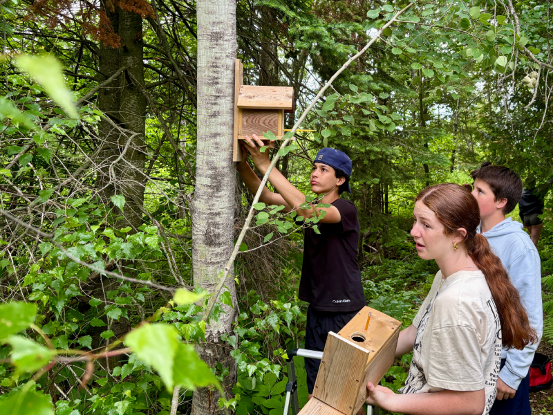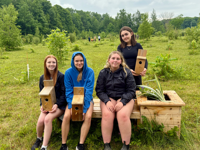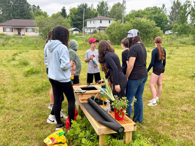 On Thursday, June 19, two Grade 7/8 French immersion classes from Pleasant Corners Public School (PCPS) visited the McAlpine Forever Forest in Vankleek Hill to install birdhouses, plant flowers, and help beautify the memorial site. As part of the student-led initiative, they also built wooden benches and flower boxes, showcasing their hands-on skills.