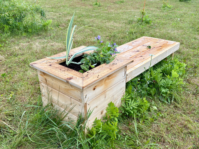 Grade 7/8 student Zakaria Mesbahi said that the original benches “didn’t look like they were going to hold on much longer. So, we wanted to replace them with ones we built. The purple flowers we chose don’t require much maintenance or water, and it was a way for us to remember Maddy.”