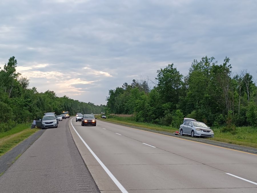 The Ontario Ministry of Transportation is investigating the specific cause of damage to at least eight vehicles on eastbound Highway 417 between Highland Road and McCrimmon Road during the afternoon and early evening of Tuesday, June 24.