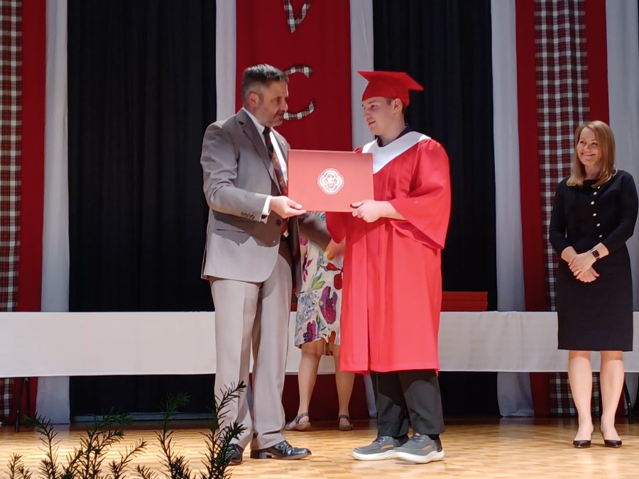 Graduate Kieran Gill is the winner of the 2025 Review Award. Gill is planning to pursue postsecondary education in broadcasting. The Review award is presented to a graduating student planning to study journalism, broadcasting, communications, English, History, or Political Science.
