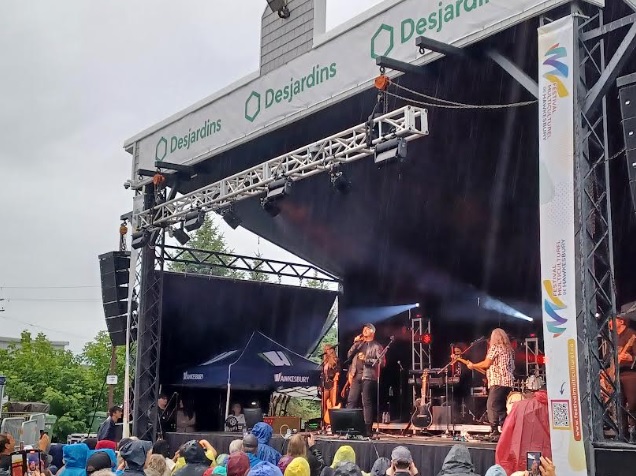 Organizers dispensed with the opening ceremony for the fourth year of the downtown festival of music and celebration of cultural diversity because of heavy rain that moved in. The downpour did not stop the evening entertainment on stage at Place des Pionniers. Manon Séguin opened the show and got the crowd excited for the headliner of the evening, Roch Voisine. Dedicated fans wearing raincoats and other waterproof clothing held firm and enjoyed the performance.