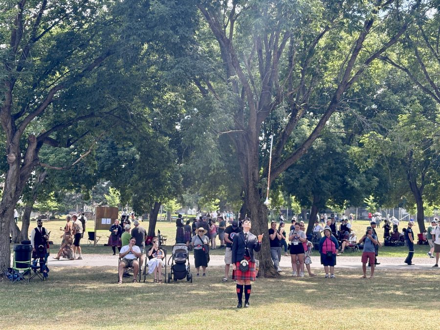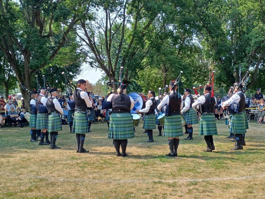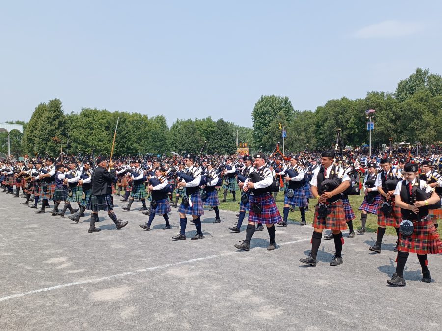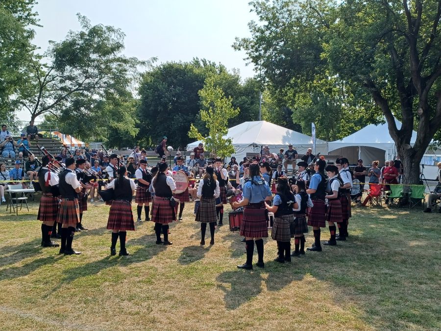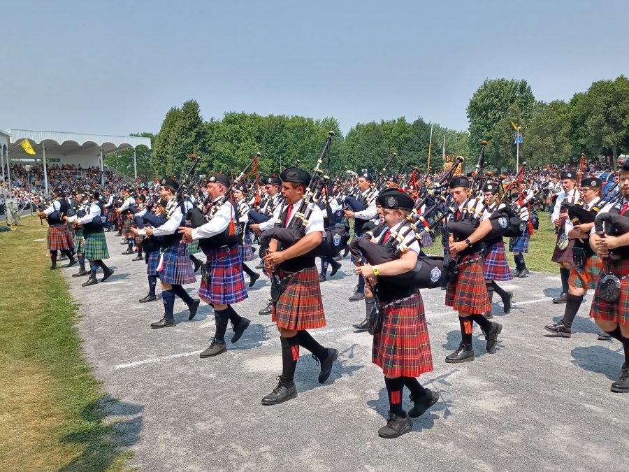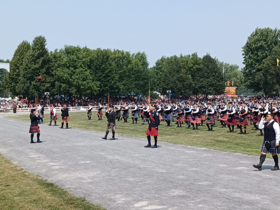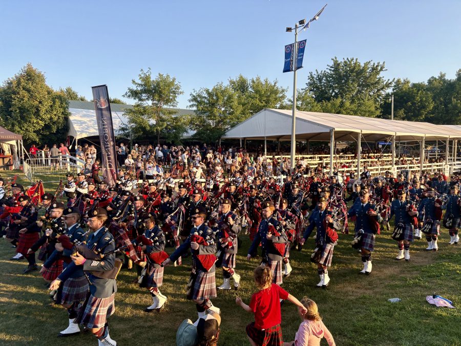 Thousands of people gathered for the Friday Night Tattoo and mass band performances on Saturday. A total of 53 pipe bands from across Canada and the United States participated in the 2025 games, along with many solo bagpipers, highland dancers, and heavyweight athletes.