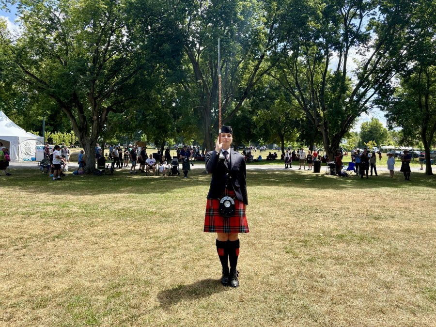 World Champion Drum Major Emma Barr of the Field Marshall Montgomery Pipe Band in Belfast, Northern Ireland also attended the 2025 Glengarry Highland Games. In addition to leading mass band performances, she also gave demonstrations to visitors.