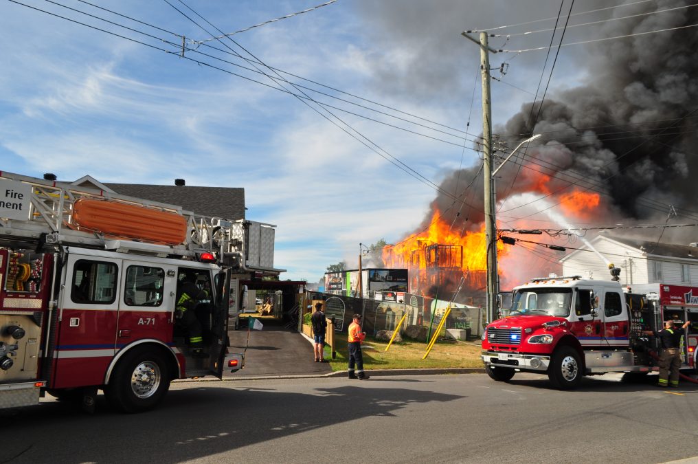 Firefighters from Hawkesbury, Champlain Township, and Grenville, along with the Ontario Provincial Police (OPP), and Town of Hawkesbury enforcement officers were at the scene of a major fire in Hawkesbury on Monday, August 18.