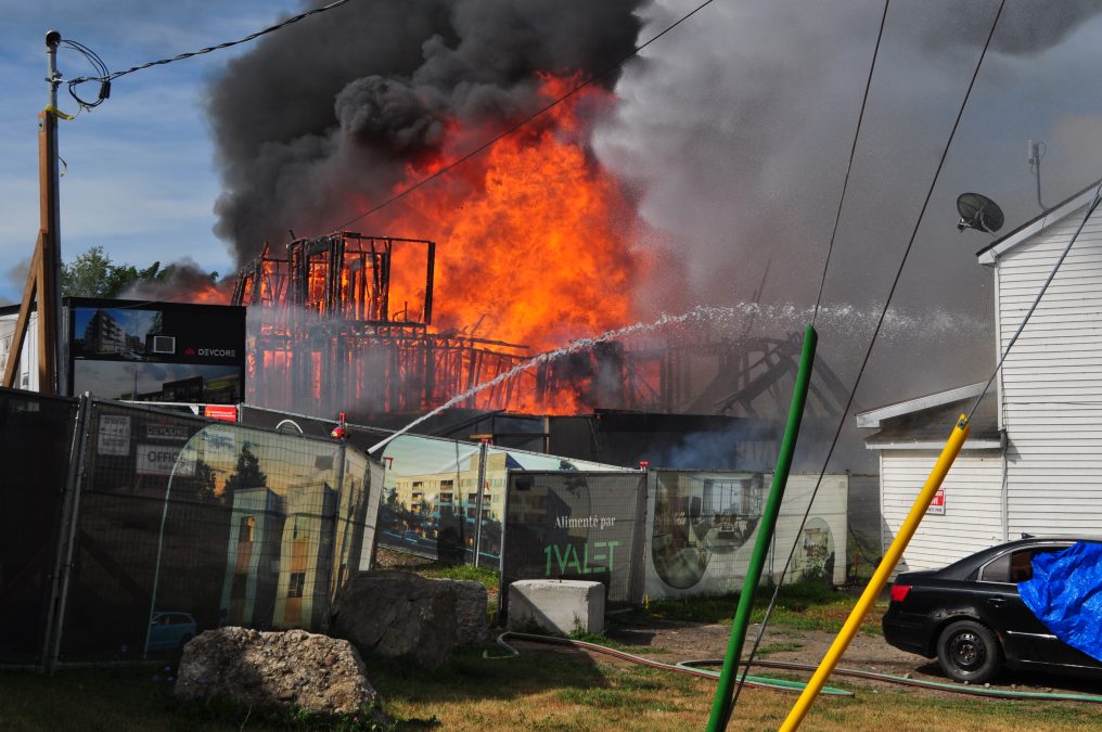 The fire occurred at the Devcore Place de la Station residential construction site between Nelson and Higginson streets and spread to a multi-unit residential building on Higginson Street.