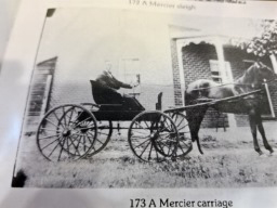 As we boarded our carriage, my uncle noticed the fine craftmanship on the Mercier 173 A. Father explained the Mercier family imported oversized plywood that was steamed and molded using clamps to form the shell of the carriage so there were no joints front to back. They run the only family business model of integrated carriage making and blacksmithing, producing carriages in the winter and cutters/sleighs in the summer, all by hand. They make the steel wheels using a stone round form that’s sunk in the ground in the backyard. I’ll tell you…that wood is burnt hot enough to melt steel and mold those wheels. The grandfather doesn’t wear gloves and can grab a piece of steel from the fire with his bare (calloused) hands when the steel is yellow and throw it in the water. You know, when that’s steel runs white, it melts, game over. The Mercier family would be the longest running carriage business from 1876 to 1965 in Vankleek Hill. The Mercier family owned the Dominion Inn (current Creating Centre), ran the Stagecoach, and had the mail carrier route from Lancaster to Vankleek Hill. Family stories included selling caskets that came in wood crates and using the crates as rafts to float on the pond near the current day VKH arena.