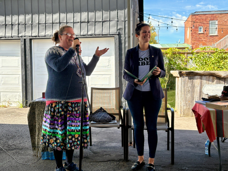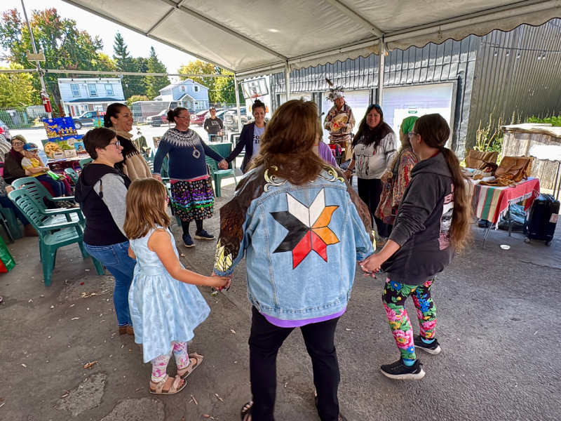 Member of Parliament for Prescott-Russell-Cumberland Giovanna Mingarelli, stopped by to share some words and participate in an Indigenous Round Dance led by Elder Tom Dearhouse, a local Indigenous knowledge keeper, with a handheld drum.
