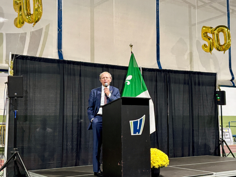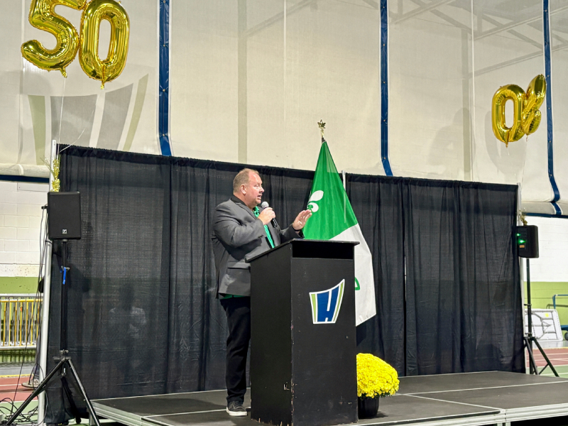 Hawkesbury Mayor Robert Lefebvre encouraged the crowd to cheer and wave their Franco-Ontarian flags before saying, “We gather every year to celebrate and remember our cultural roots. This year is even more special: we celebrate the 50th year of the green and white flag that continues to bring us together.”