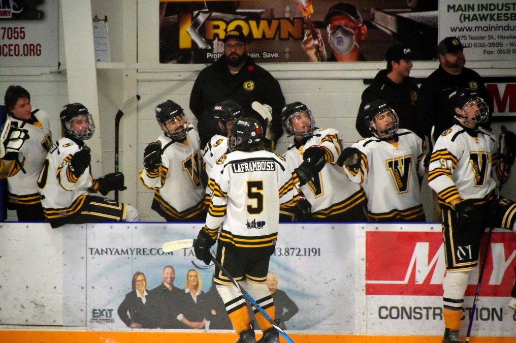 With Vankleek Hill up only 2-1 after two periods, the Cougars struck three times in less than two minutes to put the game away. Macmillan scored the first of his two goals midway through the third frame to restore the Cougars’ two goal lead. Less than a minute later Wolowicz scored and then a minute later Macmillan notched his second to seal the 5-1 victory.