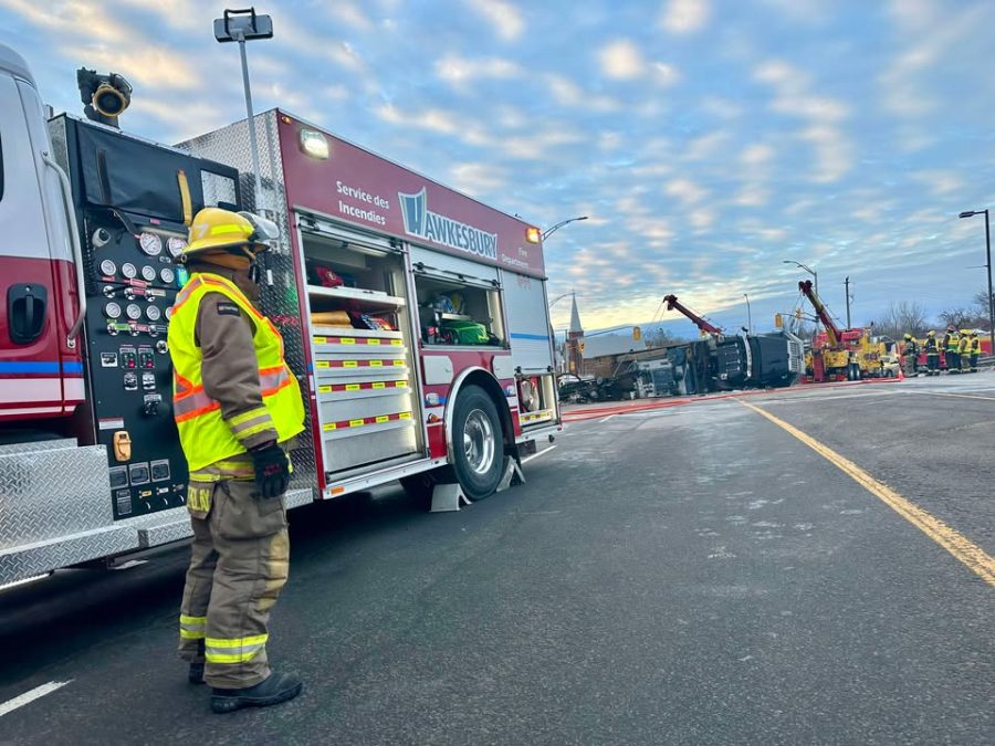 Hawkesbury Firefighters were already at the scene and providing aid to the truck’s driver. The 34-year-old male from Prévost, Québec was initially trapped in the truck but was removed by firefighters and was transported to hospital by Prescott Russell Paramedics. The man’s injuries were not serious, and he was later released from the hospital.