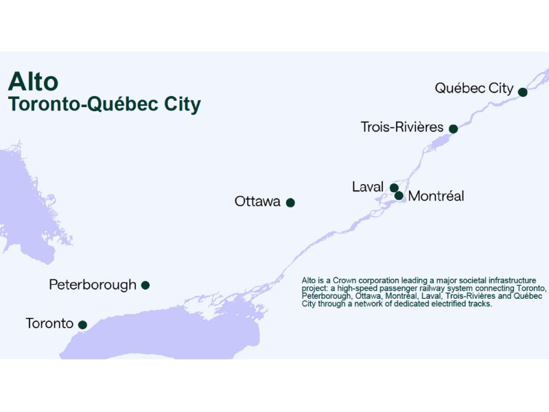 “The ALTO project aims to tackle the escalating costs of transportation between major hubs like Toronto and Montréal and reduce greenhouse emissions. Current infrastructure along the corridor cannot handle growing demand and congestion caused by rapid population growth,” Doyle said.
