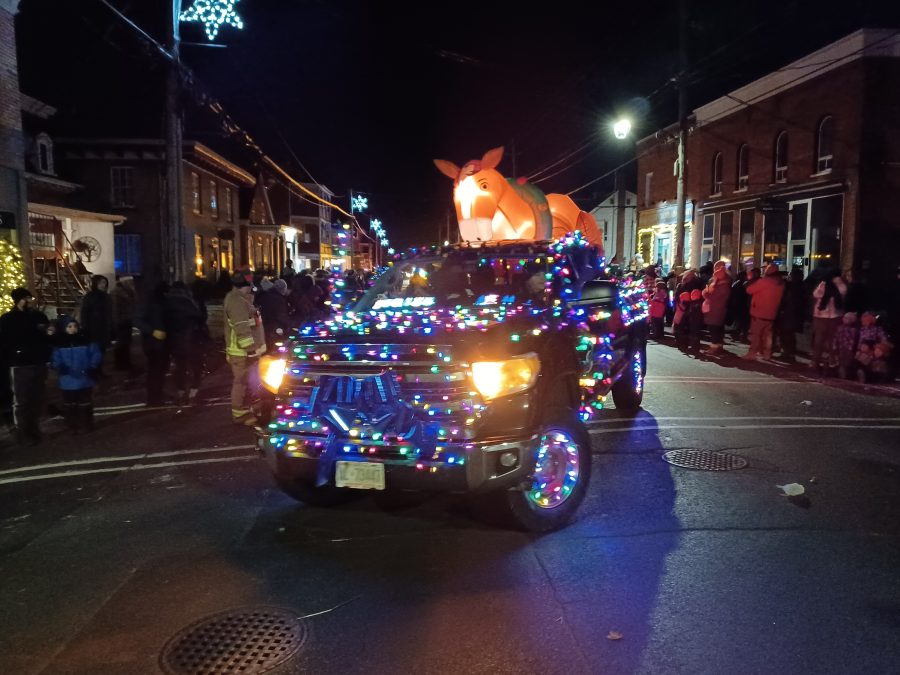The seasonal spirit was strong in Vankleek Hill during the evening of Friday, November 28 during the 2025 Champlain Christmas Parade. Many well-decorated and illuminated floats, people, and animals followed a route through town along streets crowded with spectators.