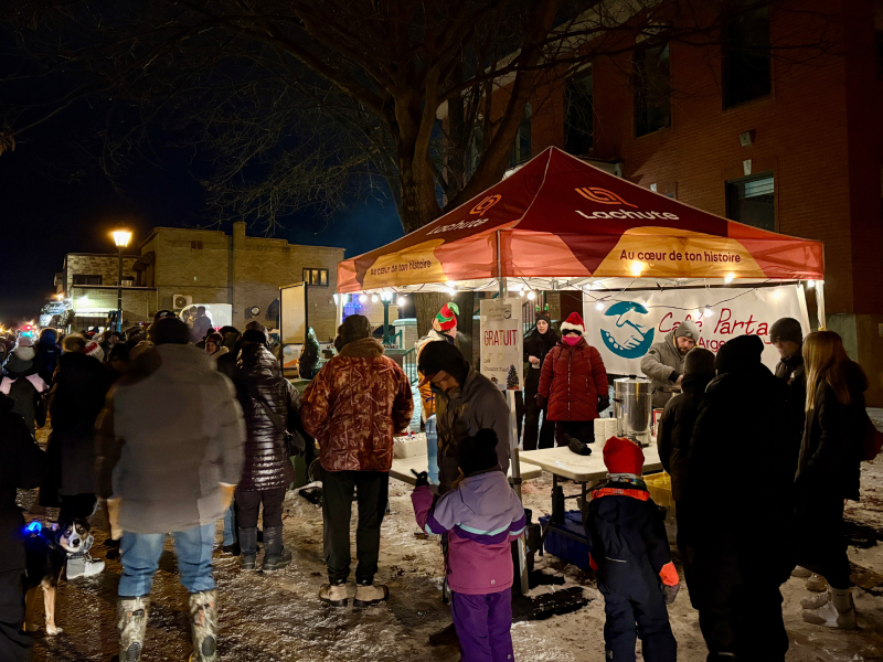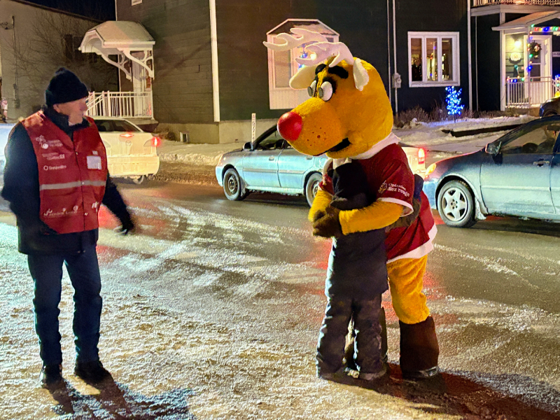 In front of Lachute’s city hall, La Chorale de l’AREQ provided holiday merriment, while municipal staff and Café Partage d’Argenteuil volunteers offered free hot chocolate and coffee to keep attendees warm before the parade.