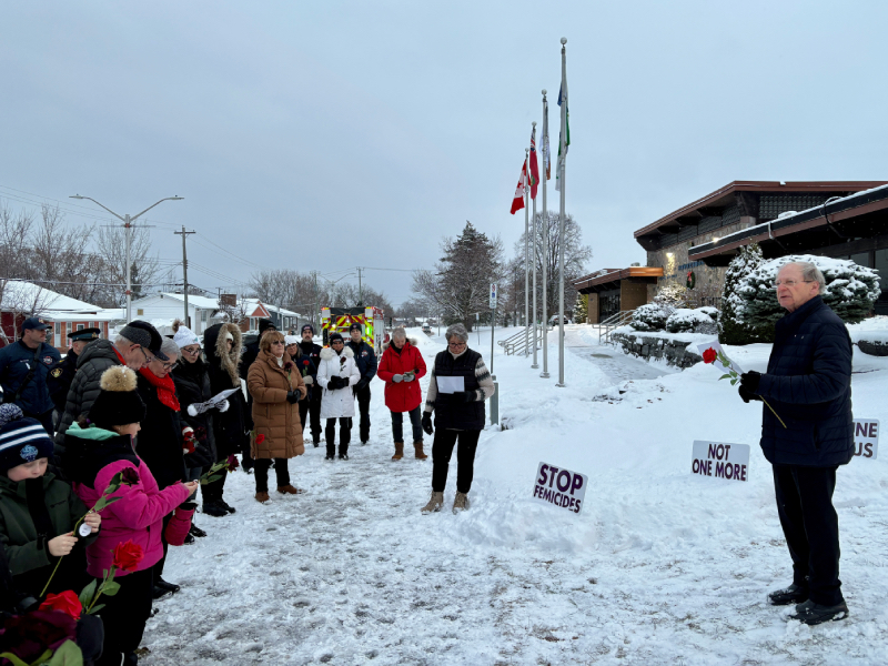 On Saturday, December 6, a community vigil was held in front of Hawkesbury’s town hall to commemorate the lives lost to gender-based violence. The ceremony took place on the National Day of Remembrance and Action on Violence Against Women, and honoured the 14 women killed on December 6, 1989, at the École Polytechnique massacre in Montréal.