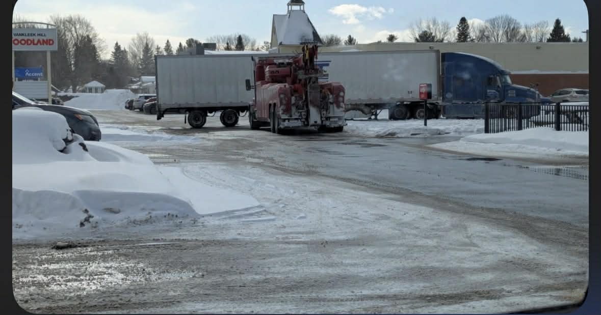A transport truck did not go where it was supposed to go in Vankleek Hill during the afternoon of Friday, January 23. The truck went off the driveway and into the vacant lot between the Foodland store and Tim Hortons on Highway 34. There were no injuries and a tow truck arrived to get the transport back on the road again.