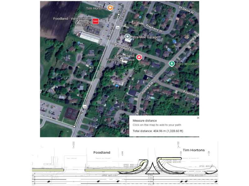 On Thursday, January 29, Champlain Township Council tabled a report concerning the design and construction of a 362-metre sidewalk along Highway 34 between Vankleek Hill Collegiate Institute (VCI) and the Vankleek Hill Foodland. EVB Engineering estimates the project would cost the township $1,046,788, inclusive of HST.