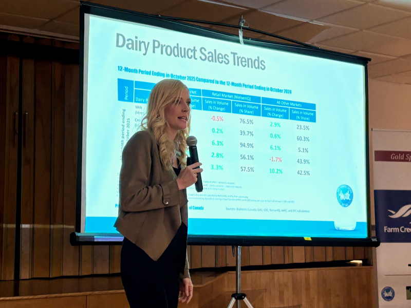 The program featured Chief Business Officer Kristin Benke from Dairy Farmers of Ontario, who discussed dairy market trends and updates to the P5 payment policy. Benke noted strong growth in the butterfat market, though it is being outpaced by the protein market.