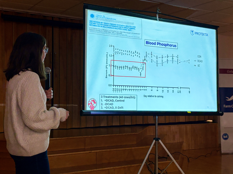 Protekta Research and Technical Director Meghan Connelly spoke about the importance of monitoring and maintaining phosphorus levels in cattle. She explained that preventing Milk Fever requires careful monitoring of dietary phosphorus, which is as critical as monitoring potassium.