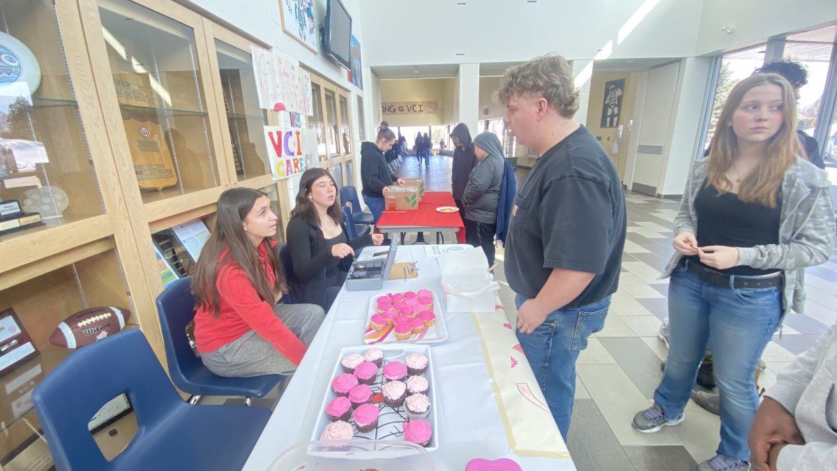Students in the Grade 10 and 11 business class at Vankleek Hill Collegiate Institute (VCI), led by teacher Isabel Campbell, recently organized a lunchtime fundraiser in support of the Canadian Cancer Society and its breast cancer research efforts.