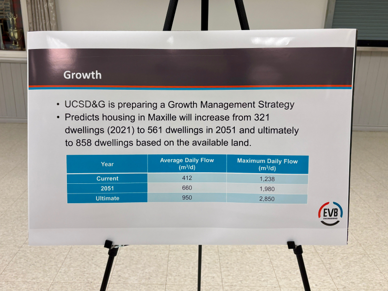 Wright said the timing presents an opportunity to address both regulatory compliance and long-term capacity planning at once. He noted the township reviewed planning maps and considered the full build-out of vacant lots within Maxville’s settlement boundary as part of the assessment.