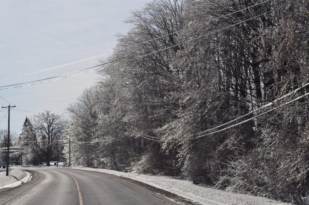 A significant freezing rainstorm spread across the region on Wednesday, March 11. The ice storm was fortunately less severe than forecasters had originally projected. The ice left a crystal coating on trees and structures. However, there was still fallen tree damage and power outages in some areas, particularly in the Laurentian foothills.