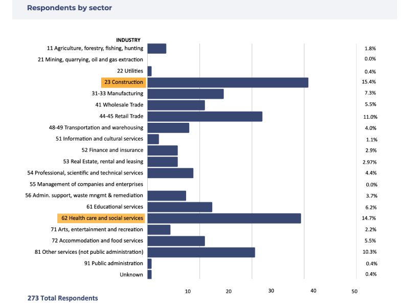 When asked what type of government or community support would be most beneficial, the majority of respondents called for wage and benefit subsidies to help with onboarding new employees, along with expanded training programs for both new hires and existing staff. Many also emphasized the need for occupation-specific training, particularly in skilled trades, as well as initiatives to attract workers to rural communities.