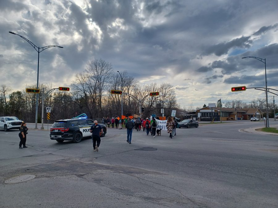 At around 5 pm, a procession began on Rue Maple/Route 344 in Grenville and then crossed over the Ottawa River on the Long Sault Bridge to Confederation Park in Hawkesbury.